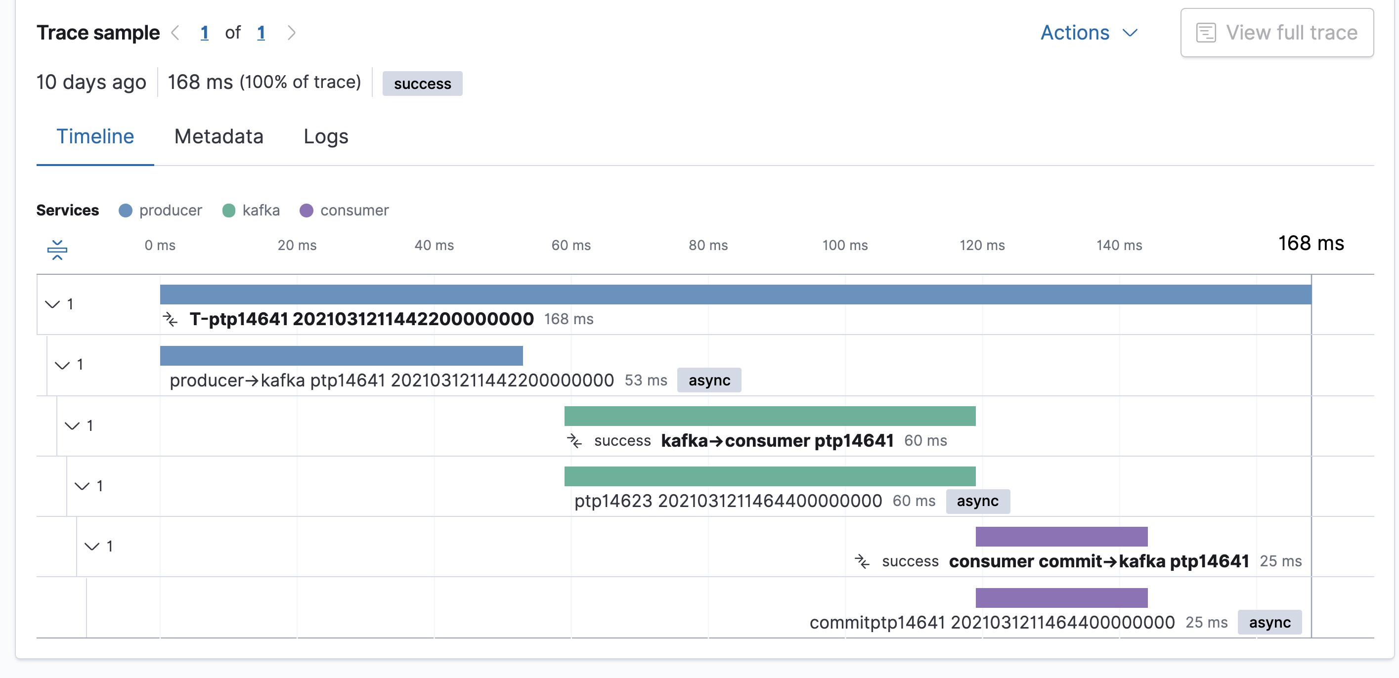 So finally, the distributed tracing timeline looks like this.