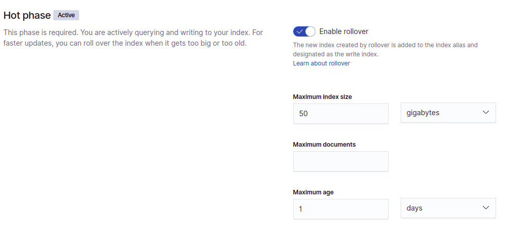 I would like to auto rollover my ES indexes every daily due the fact where it is still a bit unsure how the retention policy is going to look like. So i set it up like this: