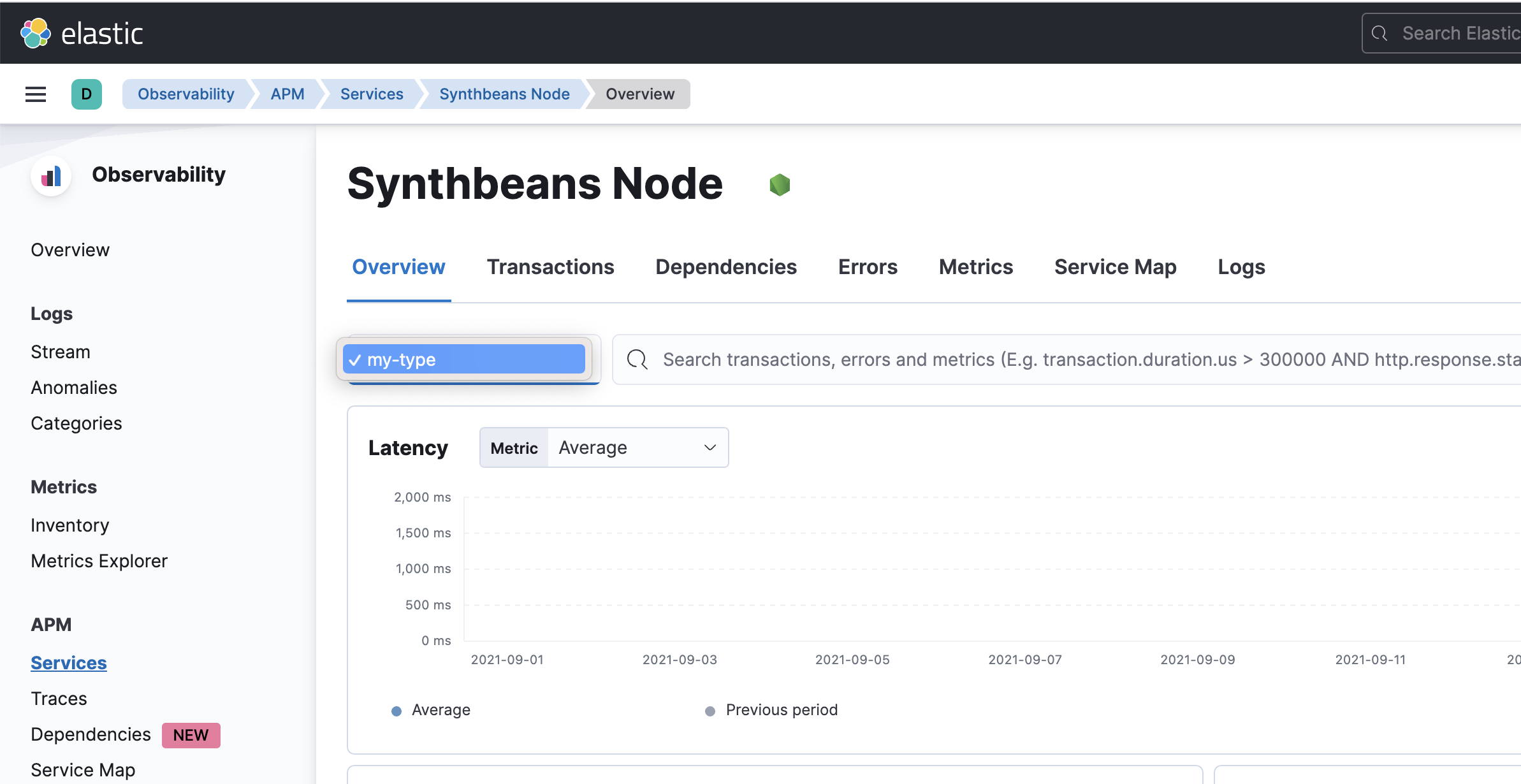 APM Overview panel is always filtering the transaction type by the most common ones and it doesn't allow to change it.