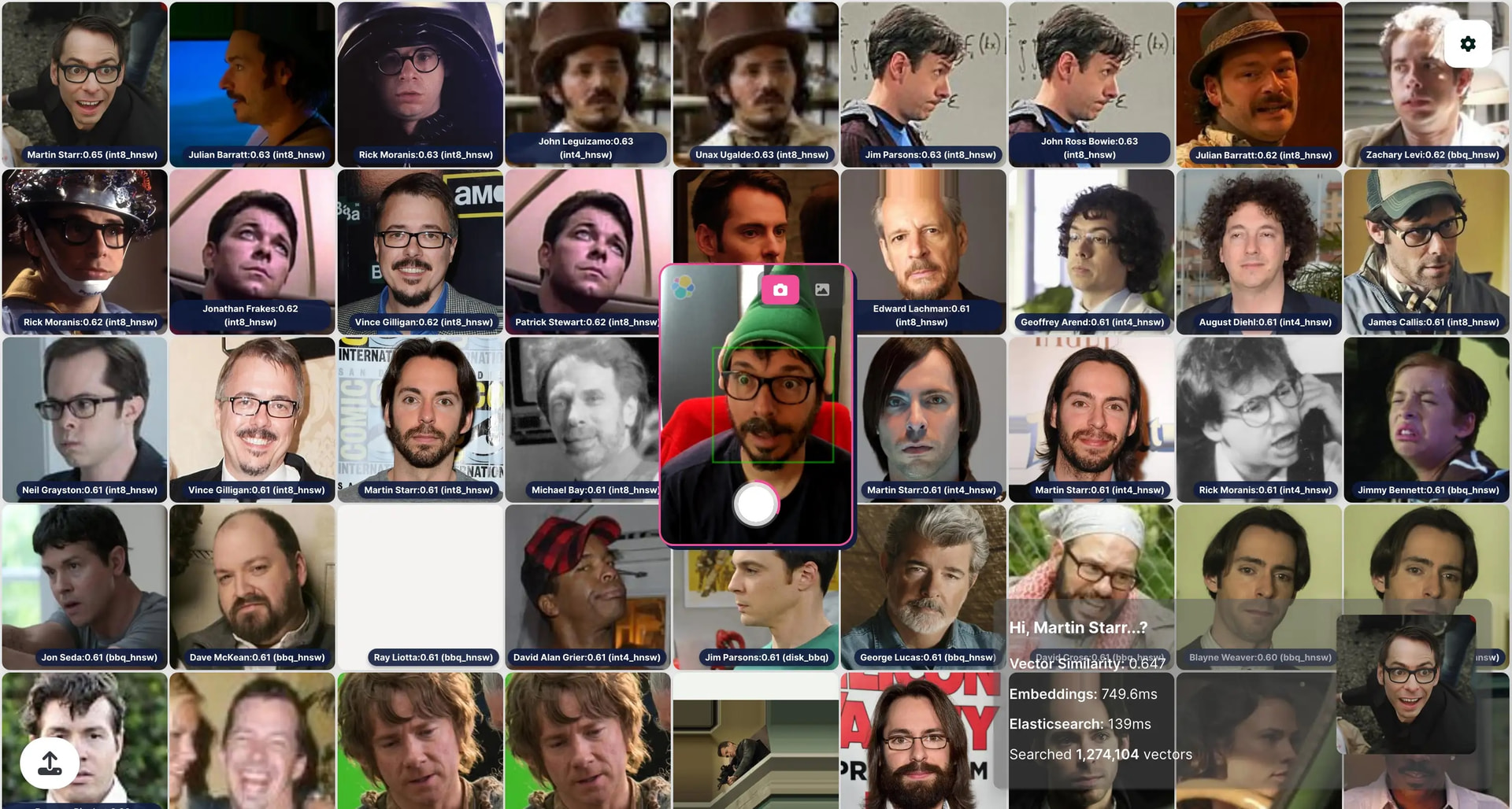 VectorFaces is a face recognition demo I developed to showcase Elasticsearch vector capabilities at conferences. It searches through 1.2 million celebrity face embeddings using Elasticsearch BBQ, DIskBBQ, int8 and int4 quantization techniques.
