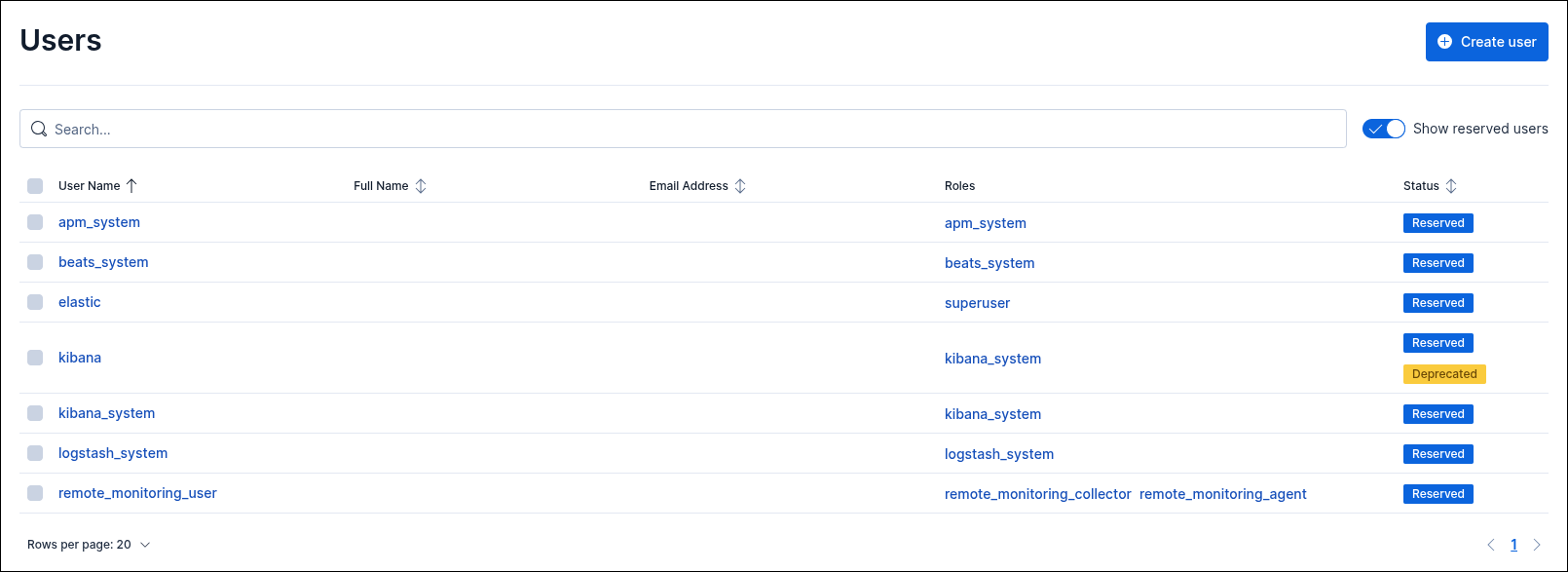 9. Tried restarting Elasticsearch/Kibana as well but user is visible.