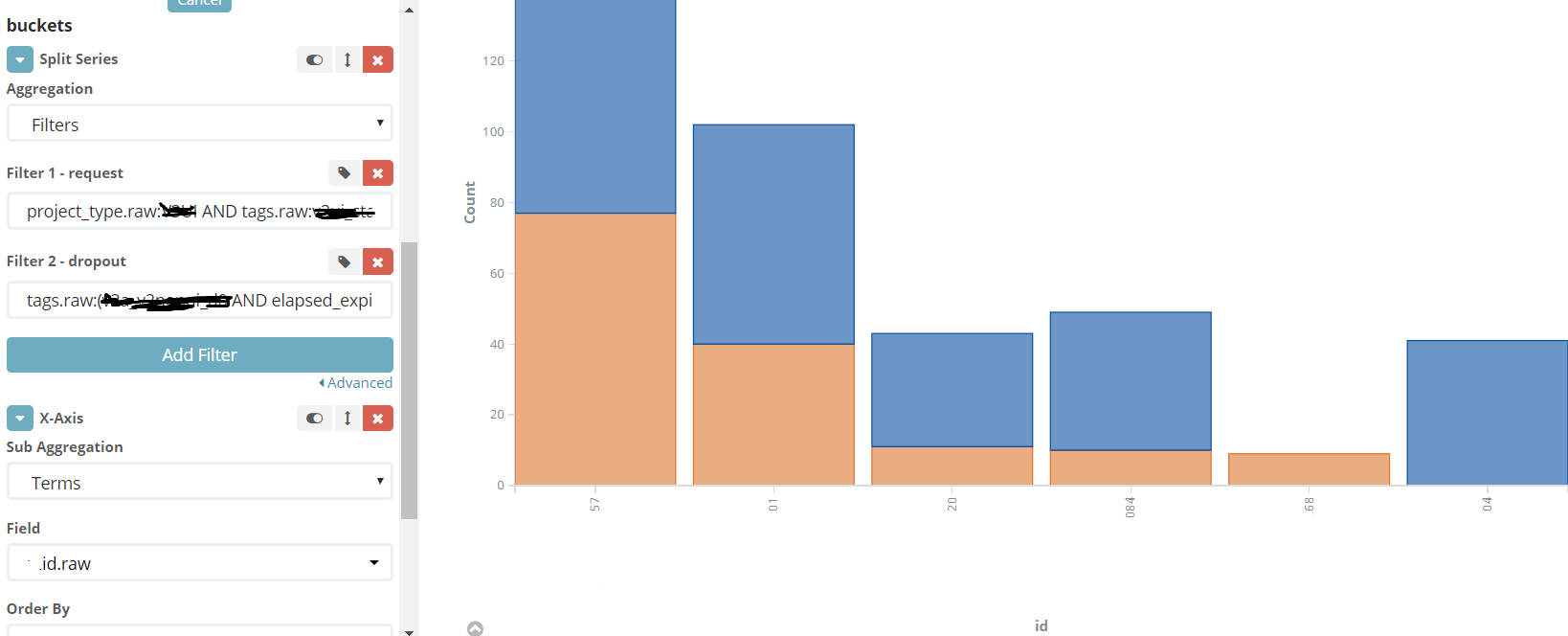 First split series, I add two filters. And second terms use by ids with 5 desc order,