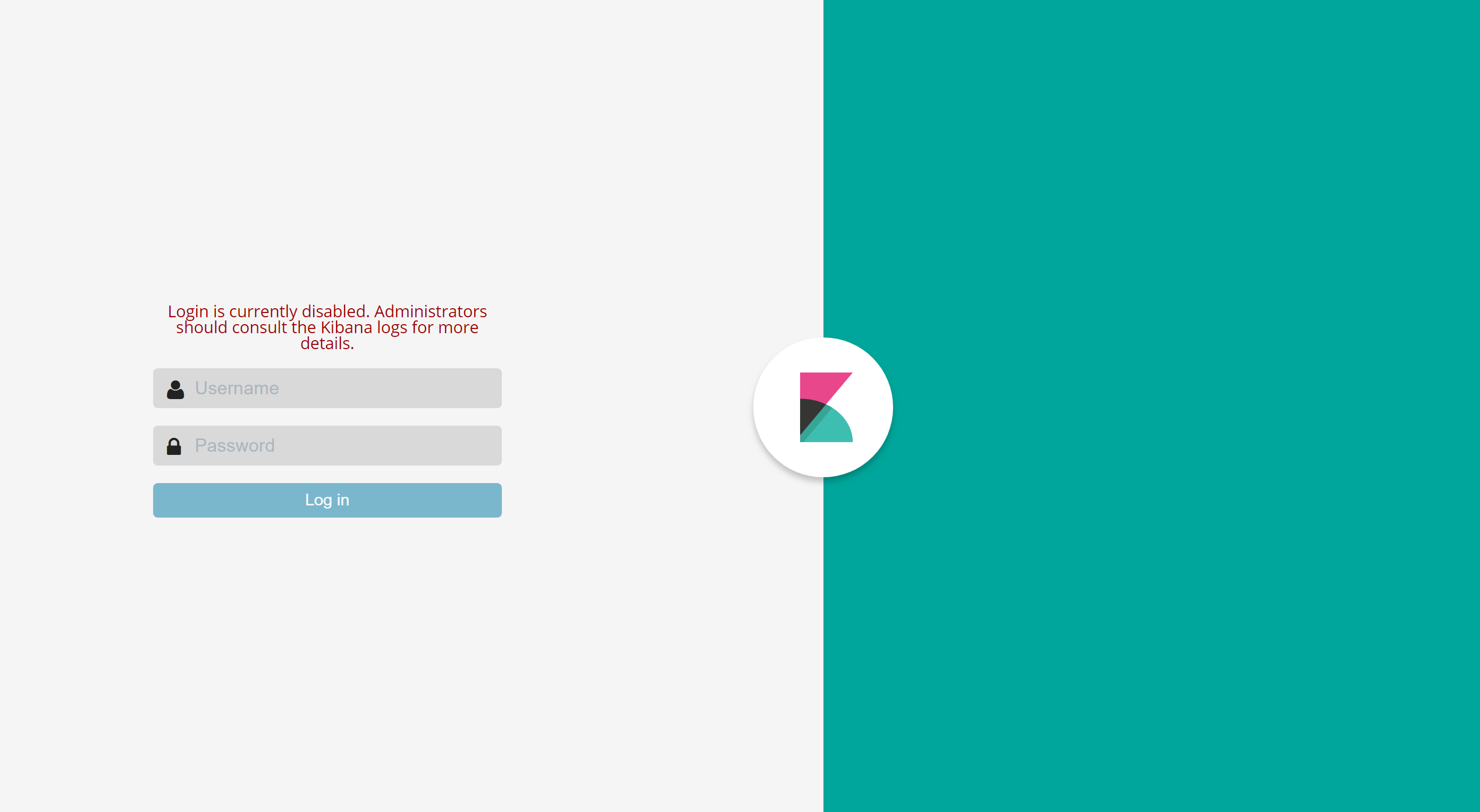 Attached also a screen from Kibana, which seems not to be able to reach Elasticsearch or nable login