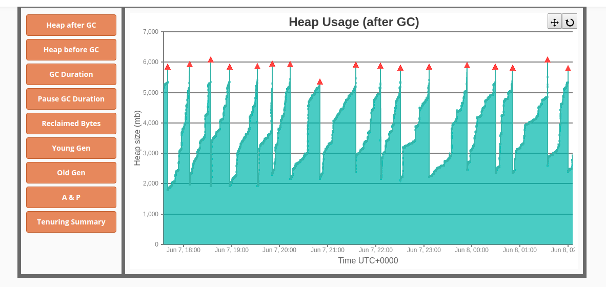 That looks fine. Can you zoom in on the GC graph you provided and show us here? It would be good if we could see the pattern and GC frequency across a shorter time period, e.g. an hour or two.