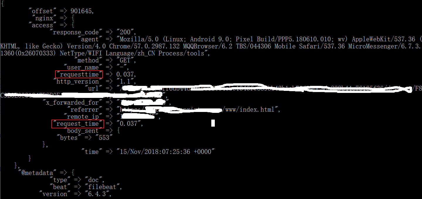 The field in the red box above is "requesttime" and "request_time" , what I want the field is nginx.access.requesttime and nginx.access.request_time,not requesttime and request_time 。 How should I modify logstash.conf to achieve my goal?