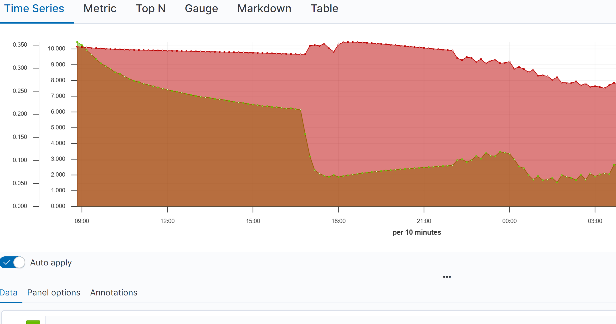 I want to use TSVB for line charts with multiple scales. I got the multiple scales working but it lookes like it is only an areal chart. On the internet I found a picture showing a TSVB line chart: