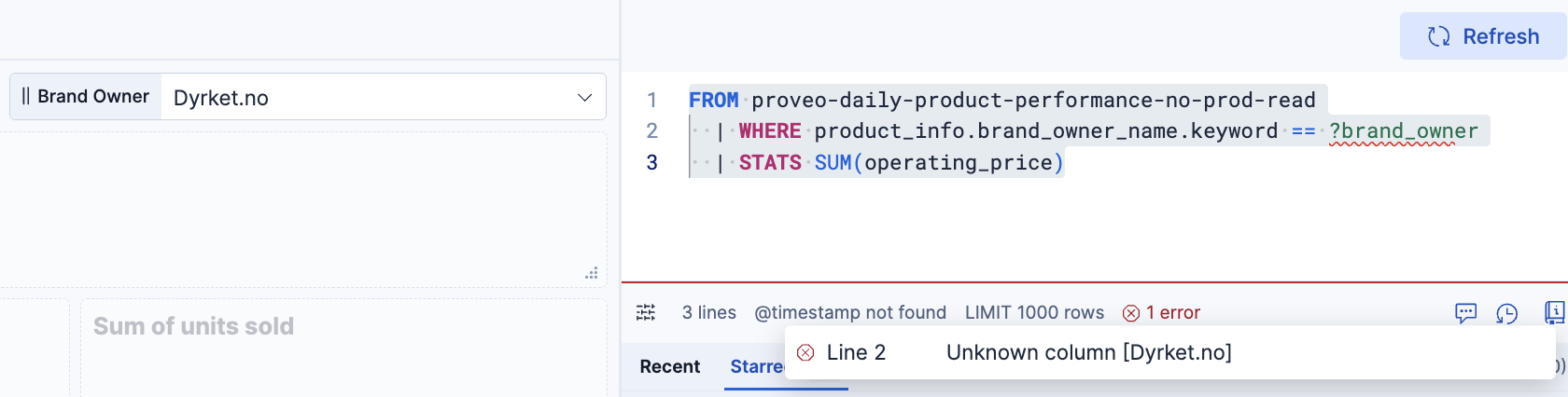 I'm testing out ES|QL controls in a dashboard, but I'm not able to use it as I expected. I've created a control with static values, but using the variable name in the query fails.