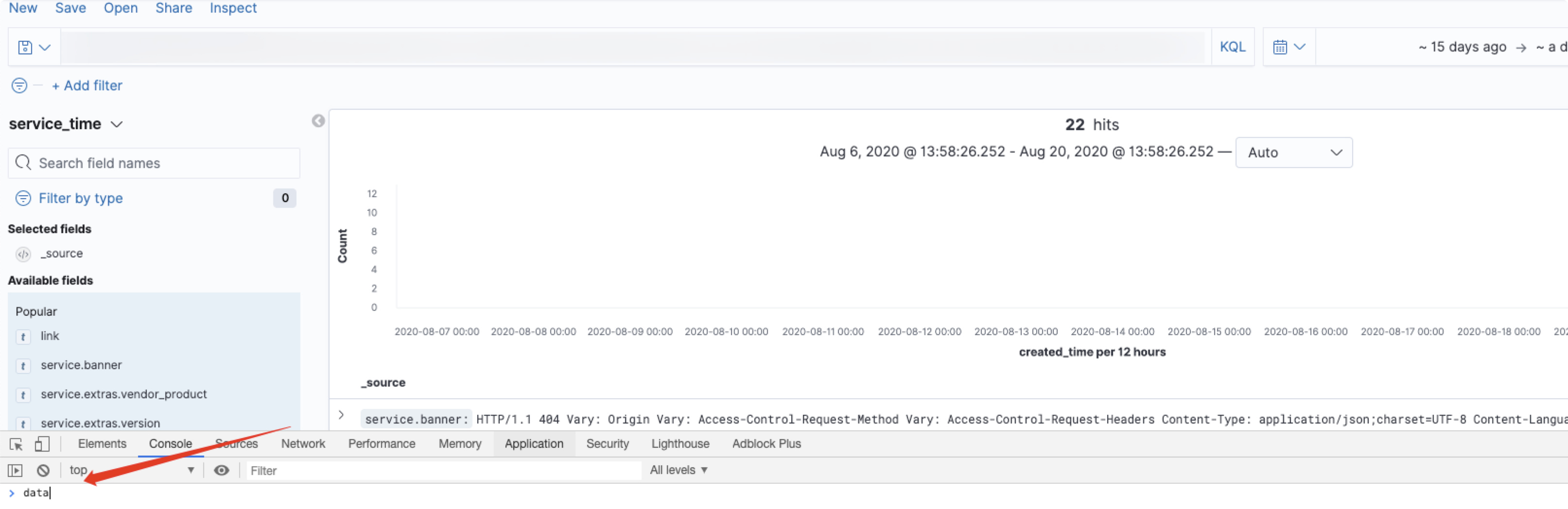 I hope that after searching in Discover, I can use JS or Chrome DevTools Console in the /app/kibana#/discover page to get the data returned by ES for further processing? How can I get the result of javascript object?