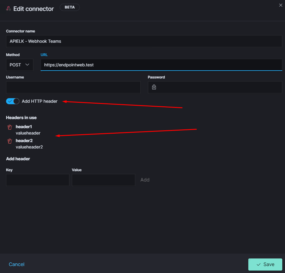 When creating a webhook connector in Kibana in alerts and actions I check the option to add a header and after I click on save, but when I go back in the connector the header disappears and it doesn't look like it's configured.