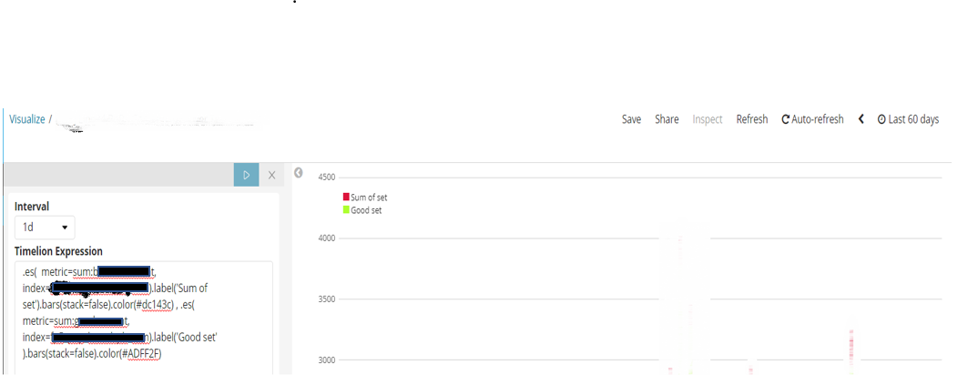 In Timelion, the sum of set and good set recorded as 248 and 223 on 19th April. However, by using metric visualization and manual calculation, the sum of set and good set obtain is 1606 and 1410.