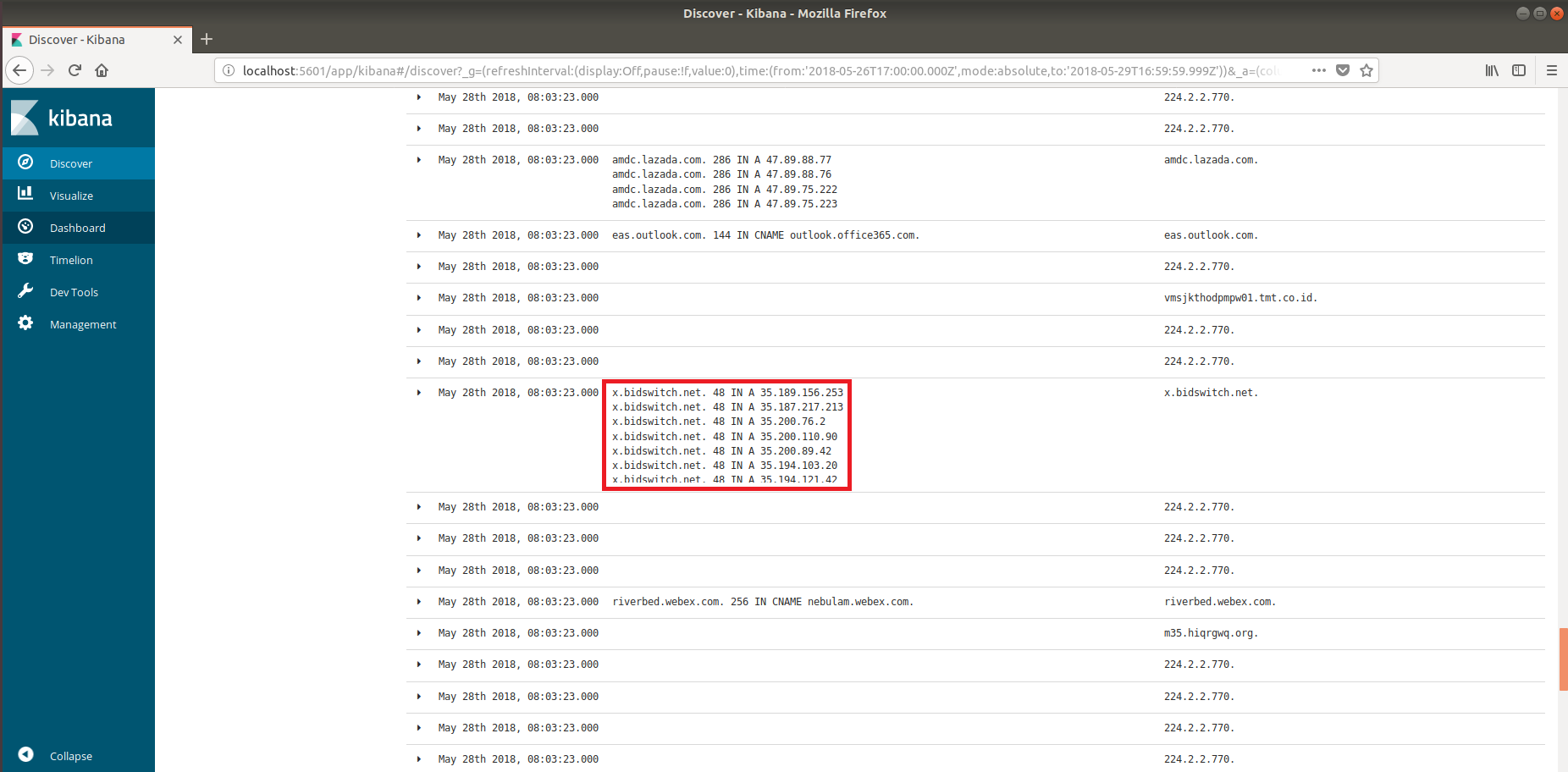 I am using Kibana 6.2.2 to visualize DNS traffic, and I want to filter out data with more than 4 answers. However, I can't seem to filter the count of it. I tried using Terms count on the visualization tab, but I can't figure out how to group the answer section per query.