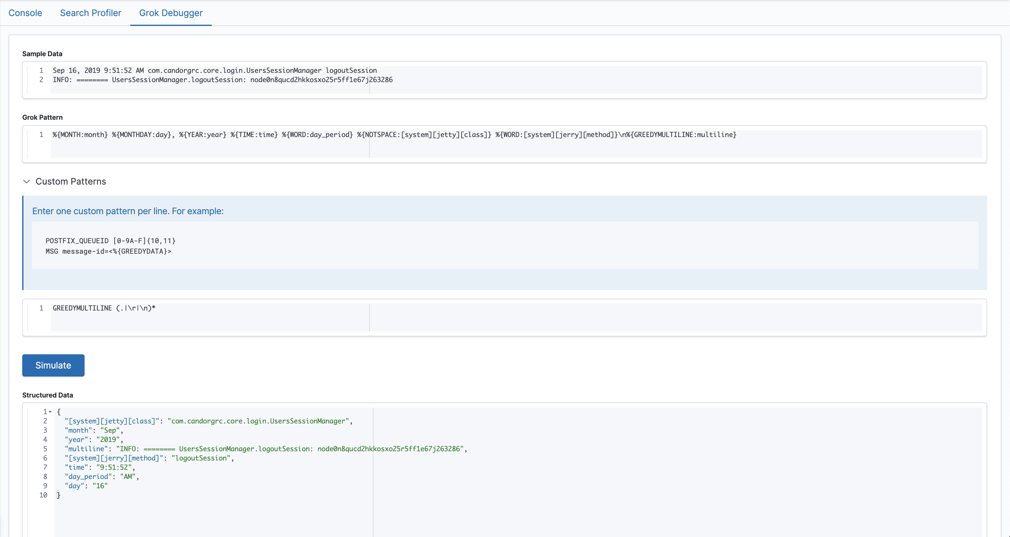 Hello I have a grok pattern with multiline pattern. On version 6.x everything worked but since I have migrated to 7.3.0 is not working anymore. I have tried to see if it is still matching in kibana but I always get an error messages: