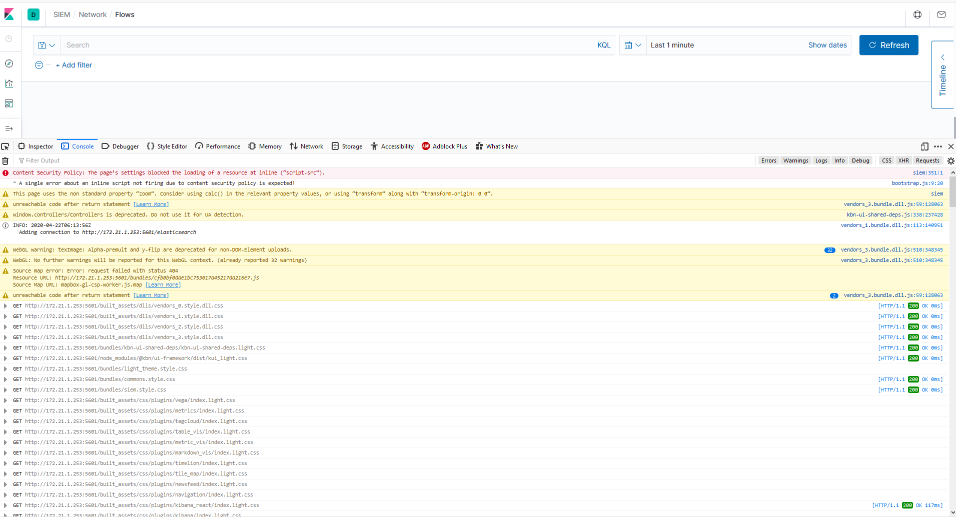 But this errors is on other tabs too but everything works fine, all siem options , dashboards etc. only network just spins.