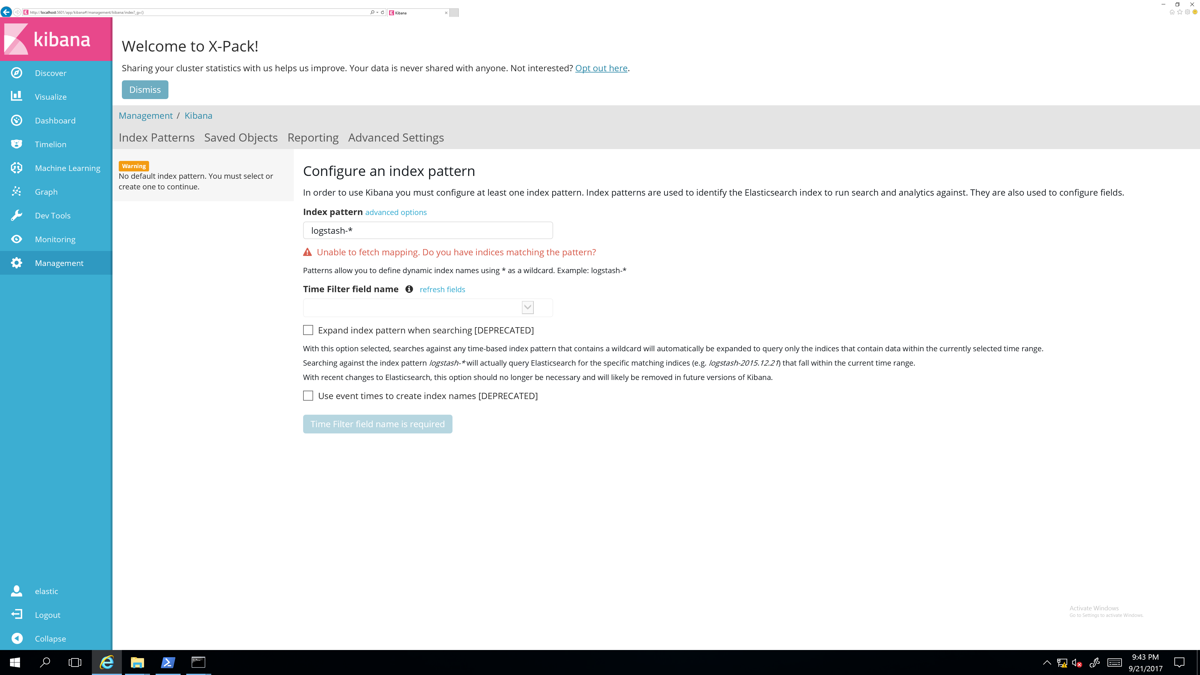 I then got the message, "Please check that Elasticsearch has the X-Pack plugin installed and is reachable, then refresh this page." when I tried to access Kibana. When I changed the kibana password back to changeme as you suggest I was then able to access kibana.