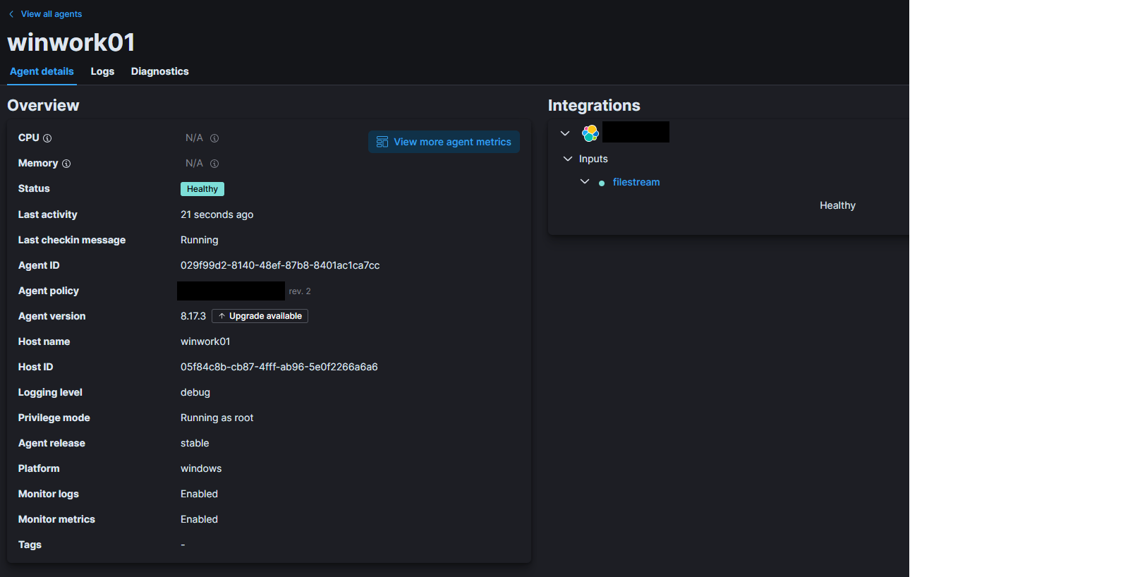 | Elastic Agent endpoint | Windows host winwork01 (10.10.0.4) |