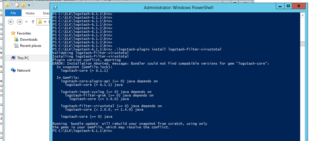 I am trying to install Logstash-filter-virustotal plugin but i am getting some errors i am using windows OS with ELK stake- 6.1.1 can anyone help?