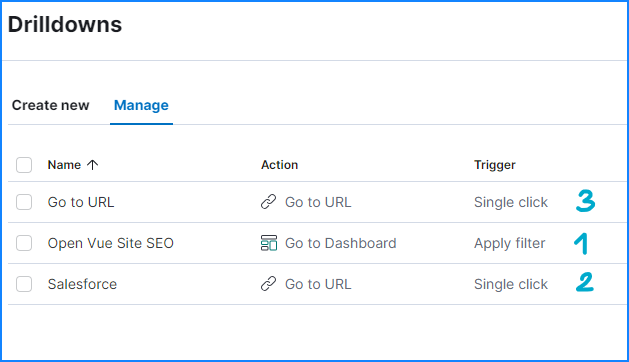 But Kibana behavior acts as is: it places the drilldown 1 for the first column and all the other for the third. When I create more Single Click drilldown, it just stuff in the third column.