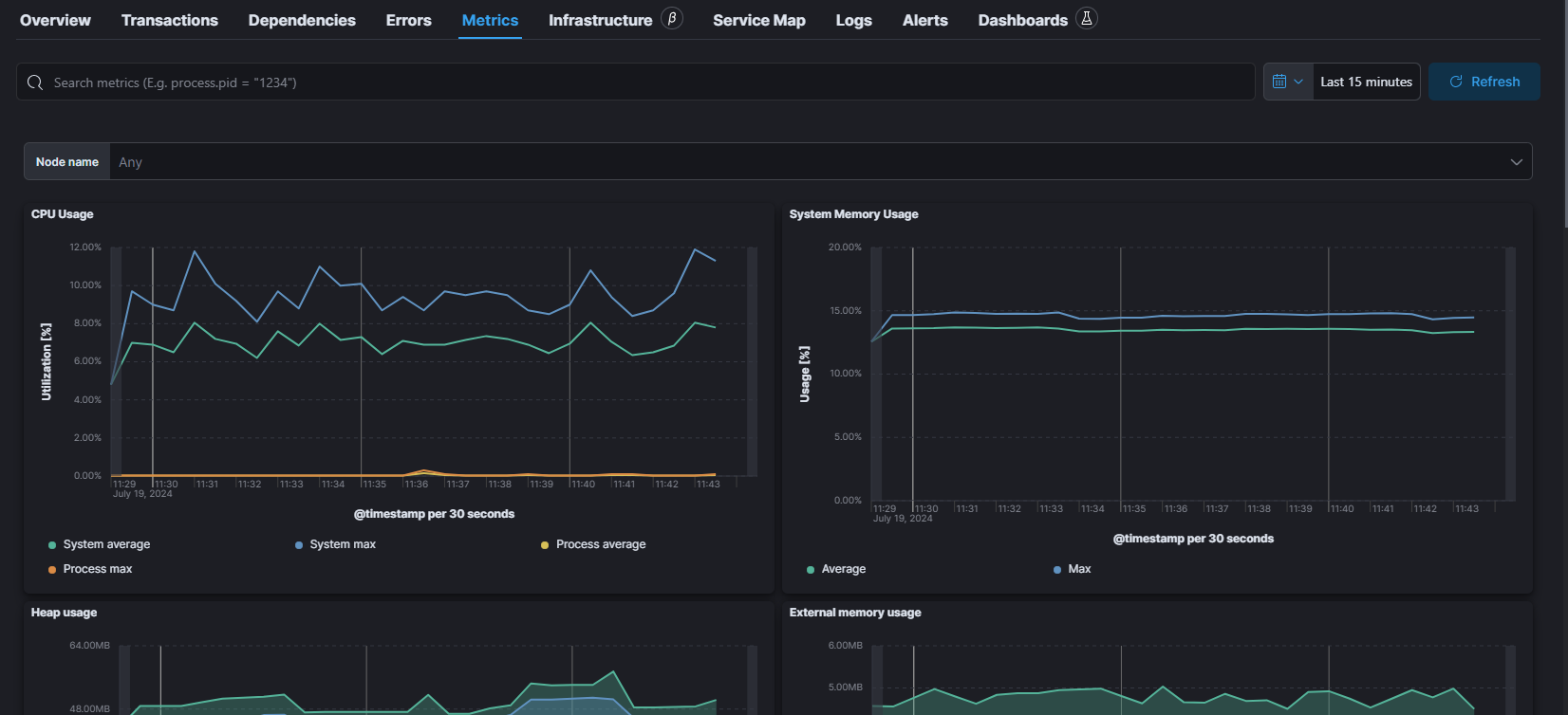 {"log.level":"info","@timestamp":"2024-07-18T09:44:13.176Z","log.logger":"elastic-apm-node","ecs.version":"8.10.0","agentVersion":"4.7.0","env":{"pid":1,"proctitle":"node","os":"linux 5.15.133+","arch":"x64","host":"myproject-576bf9784f-42j4r","timezone":"UTC-0400","runtime":"Node.js v20.6.0"},"config":{"captureBody":{"source":"environment","value":"all","commonName":"capture_body"},"environment":{"source":"environment","value":"Staging"},"logLevel":{"source":"environment","value":"Trace","commonName":"log_level"},"serverUrl":{"source":"environment","value":"http://apm-server","commonName":"server_url"},"traceContinuationStrategy":{"source":"environment","value":"restart","commonName":"trace_continuation_strategy"},"transactionSampleRate":{"source":"environment","value":1,"commonName":"transaction_sample_rate","sourceValue":"1"},"useElasticTraceparentHeader":{"source":"environment","value":true,"sourceValue":"true"},"serviceName":{"source":"environment","value":"myproject","commonName":"service_name"},"serviceVersion":{"source":"default","value":"0.0.0","commonName":"service_version"}},"activationMethod":"preload","message":"Elastic APM Node.js Agent v4.7.0"} {"log.level":"trace","@timestamp":"2024-07-18T09:44:13.257Z","log.logger":"elastic-apm-node","ecs.version":"8.10.0","event.module":"apmclient","message":"corking (cloudMetadataFetcher)"}