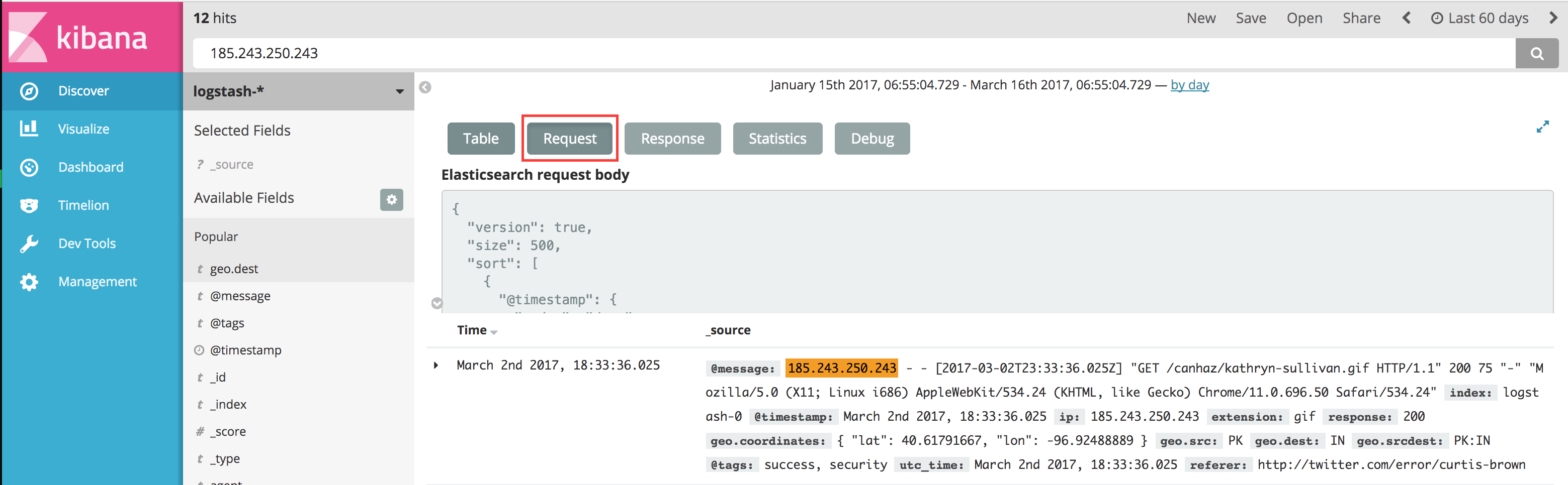 Searching is real easy via kibana. Just type in a word and all events containing the word are given back.