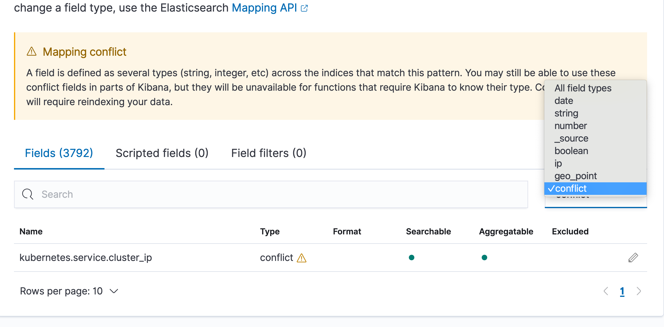 Can you show, Which fields have conflict in the index pattern....