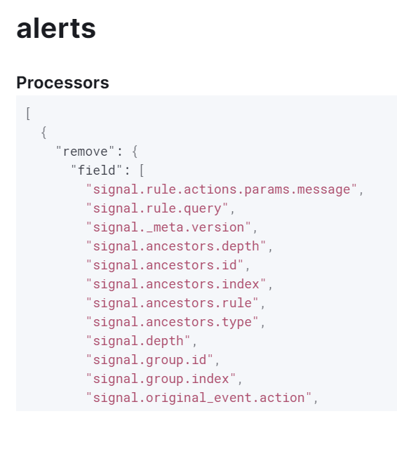 I'm looking to re-index the .siem-signals-default index into an index called alerts and have created a pipeline to remove fields from the .siem-signals-default index.