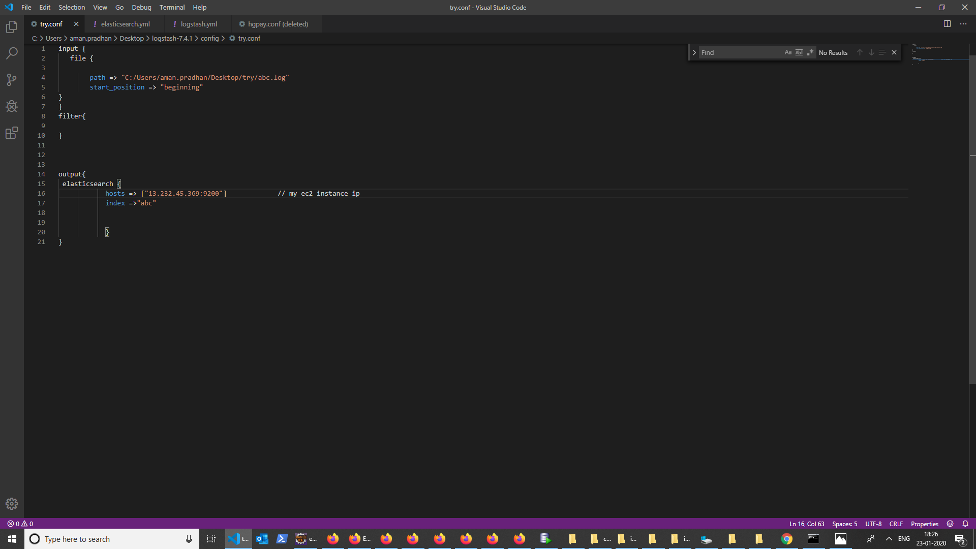 I am using logstash on a linux based server . I am collecting the logs on this server and after processing the logs with logstash i want to send these logs to elastic search which is on an amazon ec-2 instance . for this what are the changes i will have to make in logstash config file and elasticsearch.yml ,logstash.yml file...i am changing the logstash output filter from hosts => ["localhost:9200"] to hosts => ["ec-2ip:9200"] . Do i have to change anything else or should there be any protocol enabled between these two servers . TCP is enabled between them.