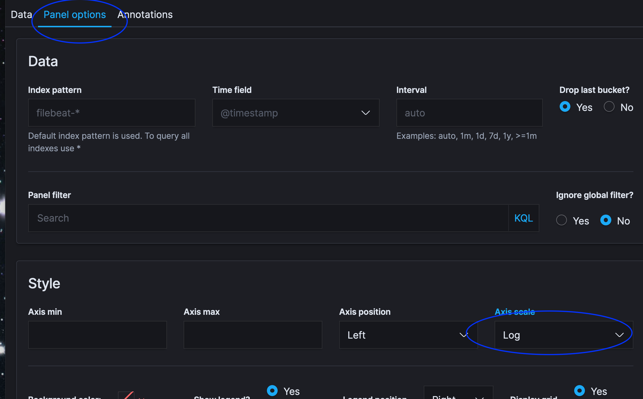 How can we change the scale type to log as we do it in the BAR charts or anyother alternative option to bring up those line in the correct position.