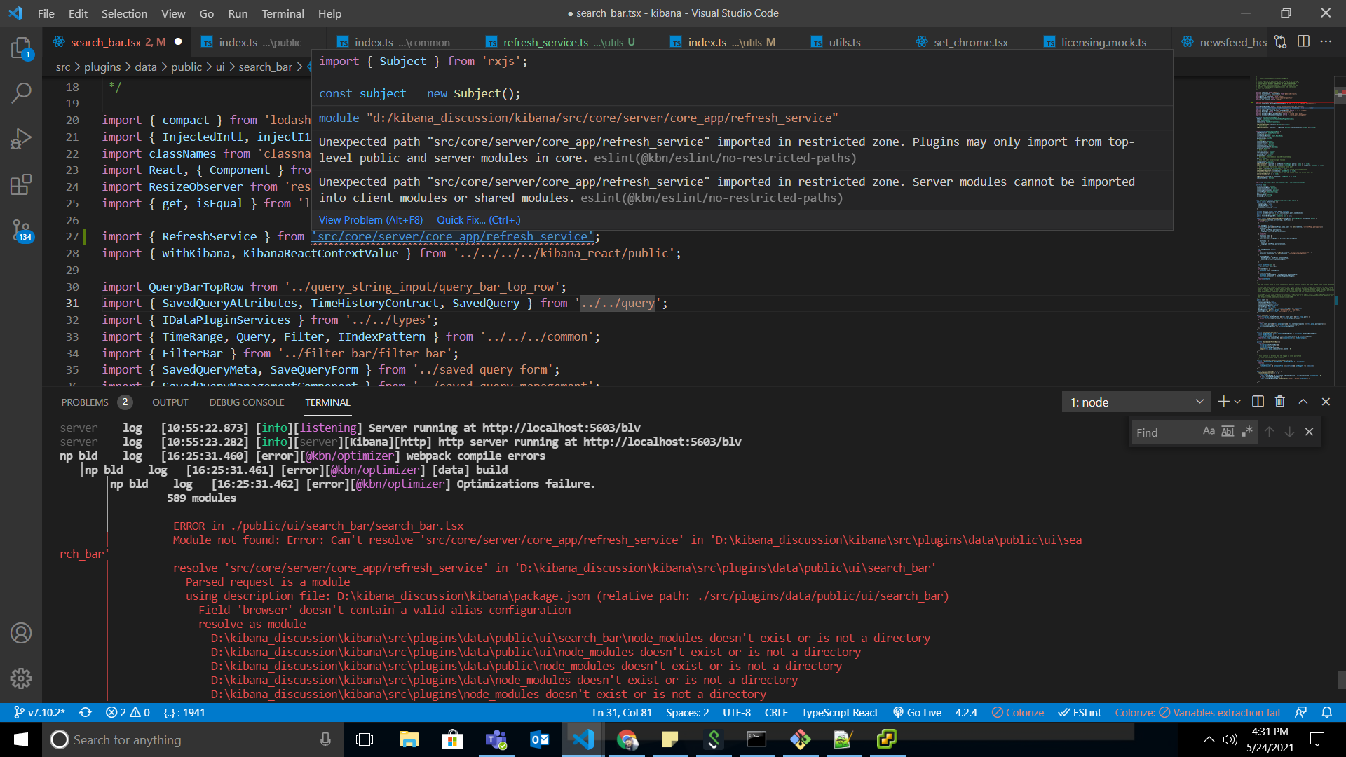 Module not found: Error: Can't resolve 'src/core/server/core_app/refresh_service' in 'D:\kibana_discussion\kibana\src\plugins\data\public\ui\search_bar'