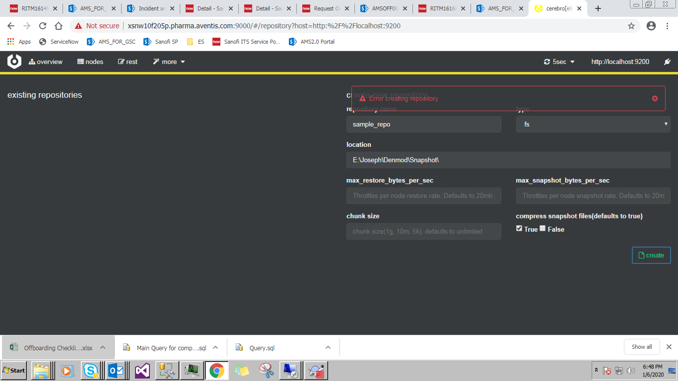 Unable to create repository using cerebro tool. Please find the attached screenshot for the error.