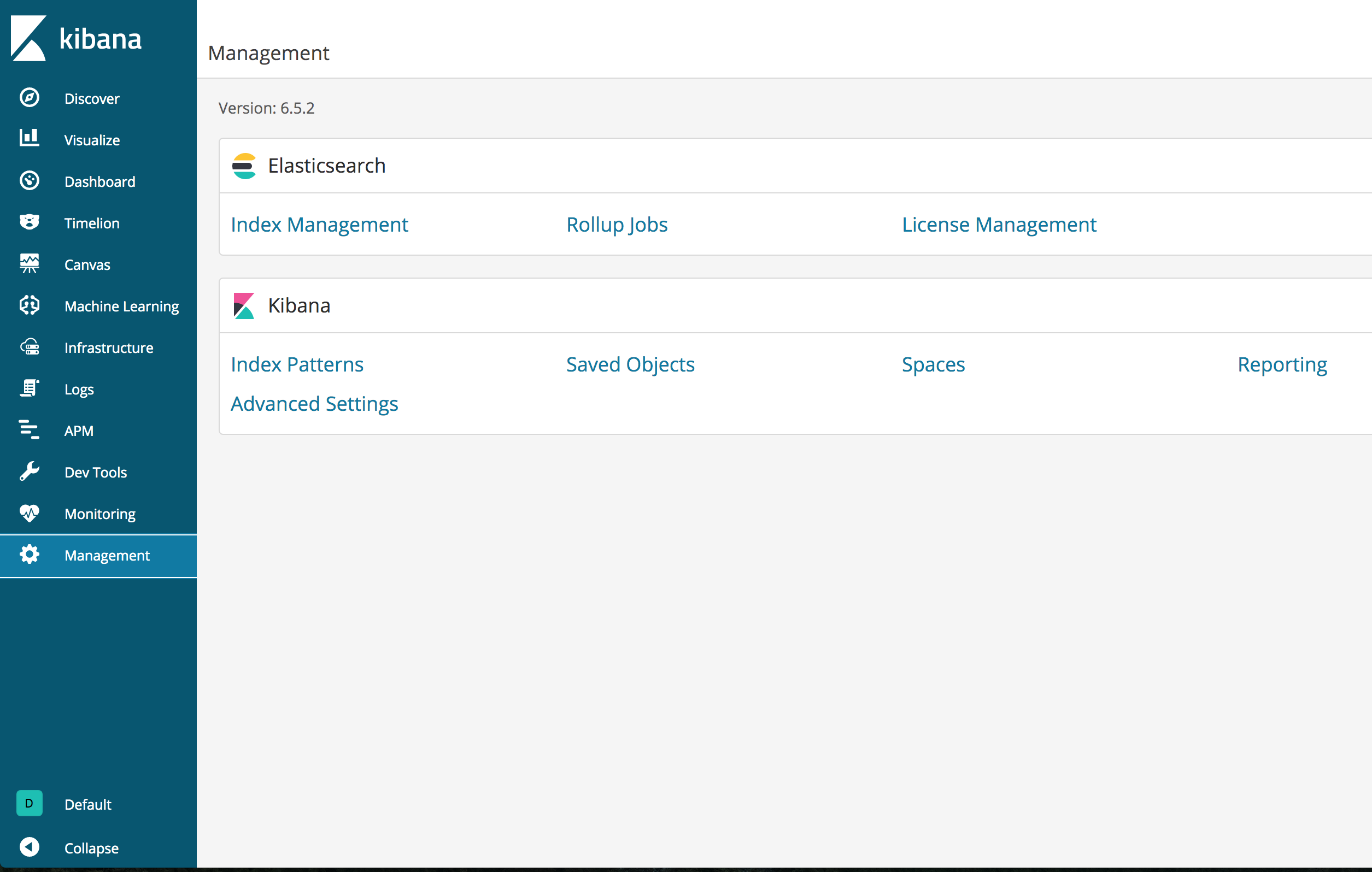 I have 3 instances of Kibana (for redundancy) running against Elasticsearch 6.6.0 with the Basic License. I recently upgraded 1 of the Kibana instances from 6.5.2 to 6.6.2 in order to fix a visualization bug in the earlier version and in doing so I've lost all the advanced Kibana features. Most specifically, I want to enable Kibana "Spaces" in the newer version but as you can see in my screenshots below all the advanced features are missing. I'm not sure what I'm missing, any ideas?