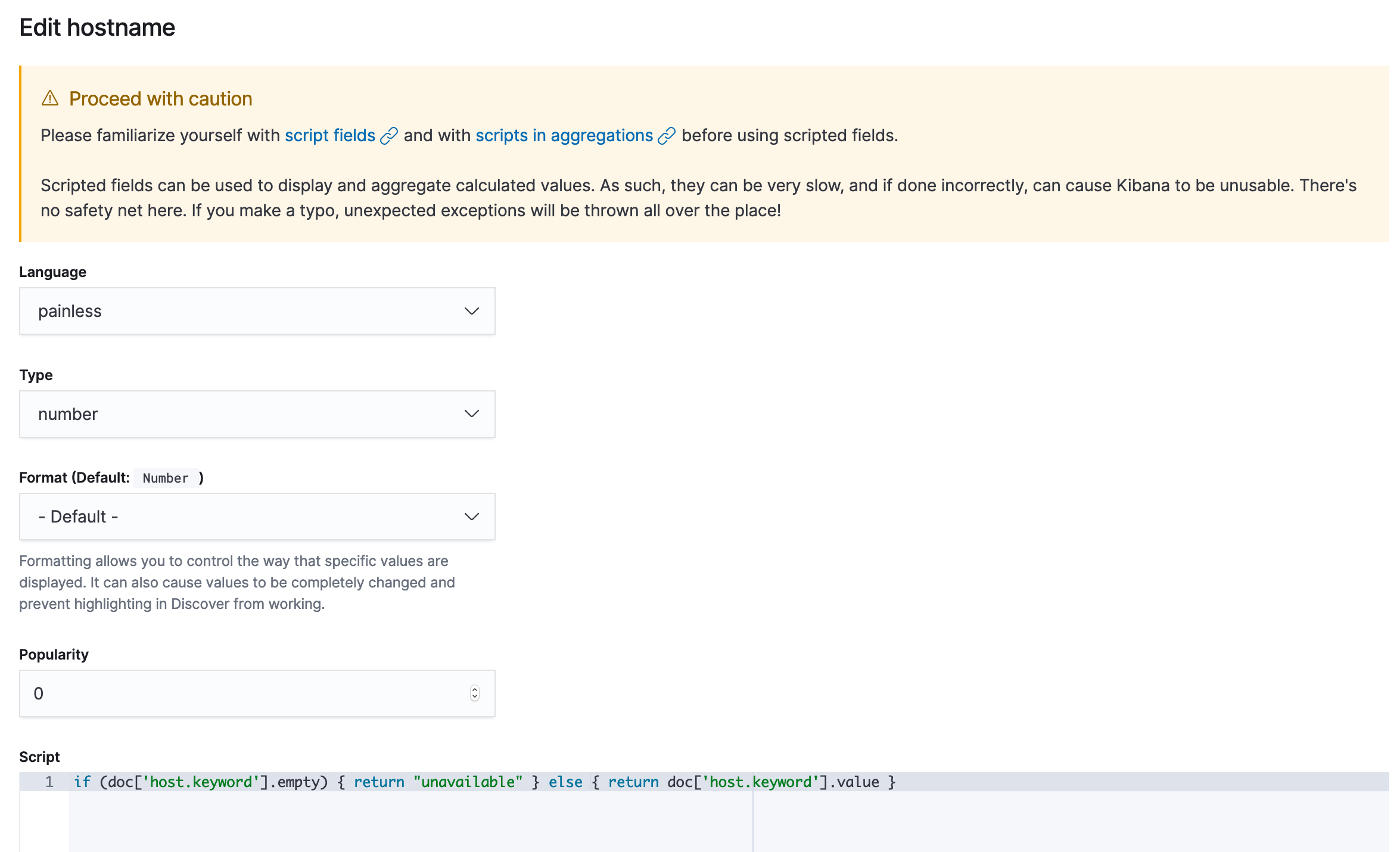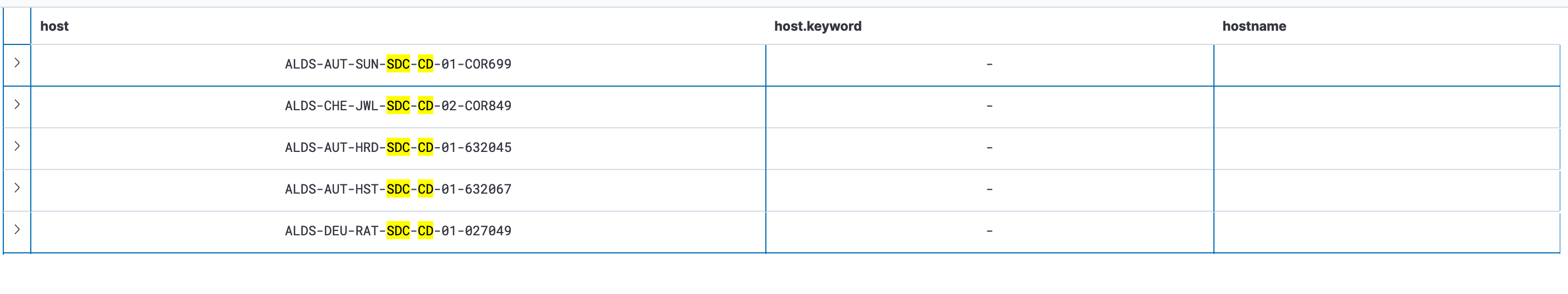 It looks like the screen shot for host.keyword response is actually showing the response for scripted field hostname. You can tell by looking at the request description. The left source always says copt-fast-aldi*:hostname. I would expect one to include the text copt-fast-aldi*:host.keyword.