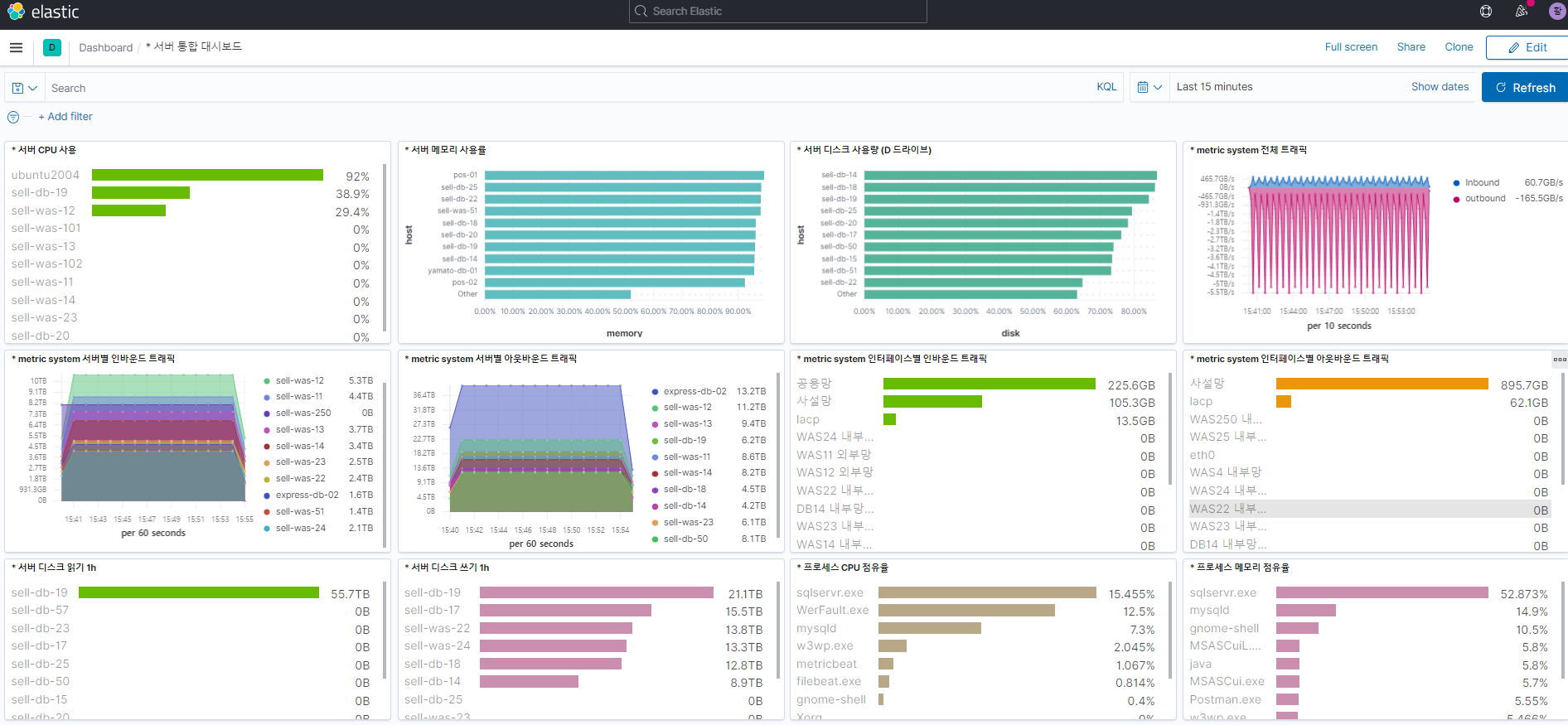 네 답변 감사드립니다~! 계속 확인하다보니까 조회를 할 때 일시적으로 보여졌던 데이터가 안보여질 때도 있는거 같은데, 이건 원래 이런걸까요? 이전 1시간 조회하고, 새로고침할 때 데이터가 나왔다가 안나왔다가 이런 현상이 벌어지네요. 시간 필드는 @timestamp로 되어있고 다른 visualize들은 문제 없는데, 디스크 읽기하고, 인터페이스별 인바운드 아웃바운드 트래픽만 이러는거 같습니다 흠..