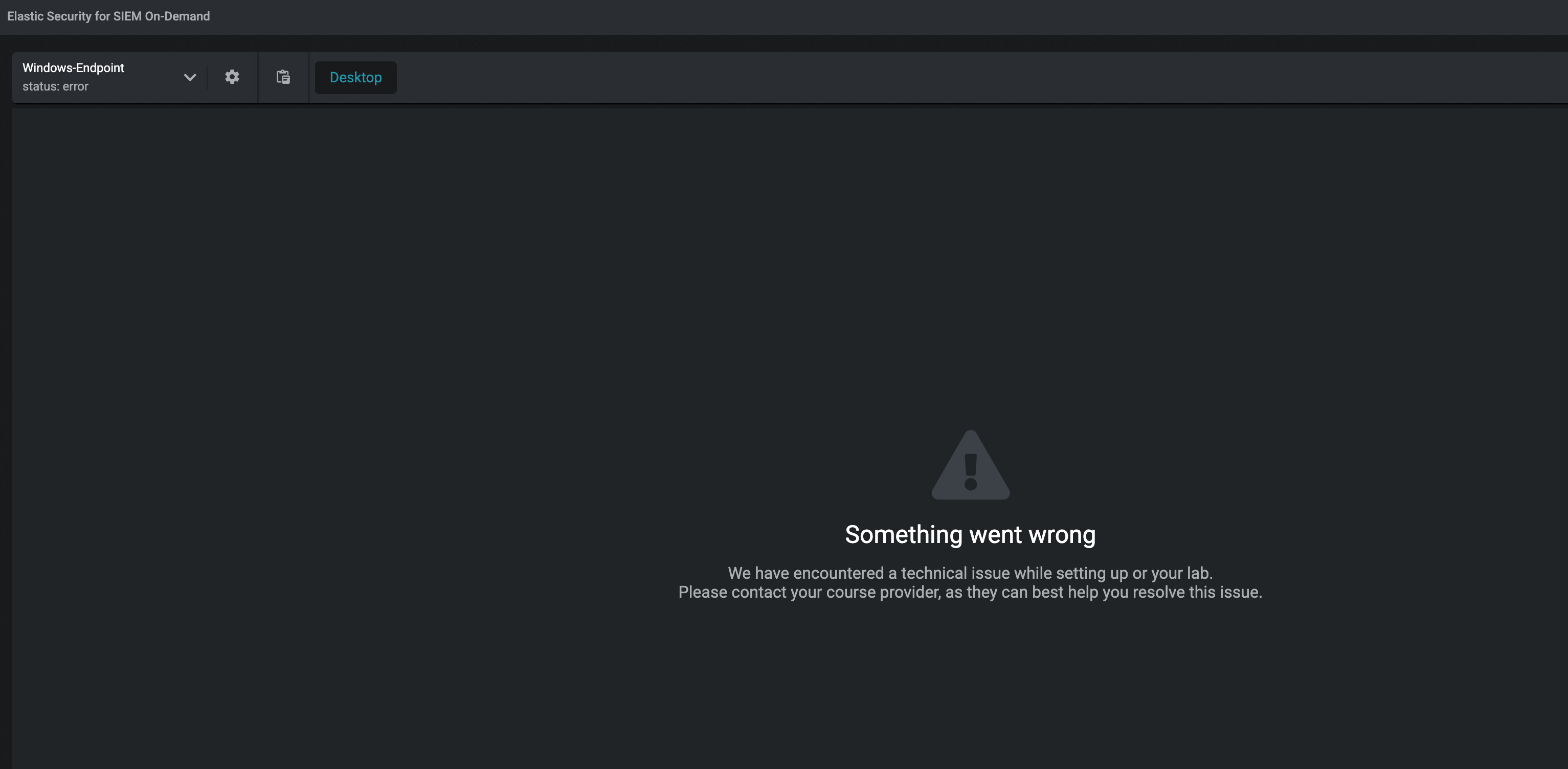 I’m working on Lab 7.3 in the Elastic Security for SIEM course and need to generate data for a detection rule. The problem is that I can’t connect to the Windows endpoint provided in the lab environment.